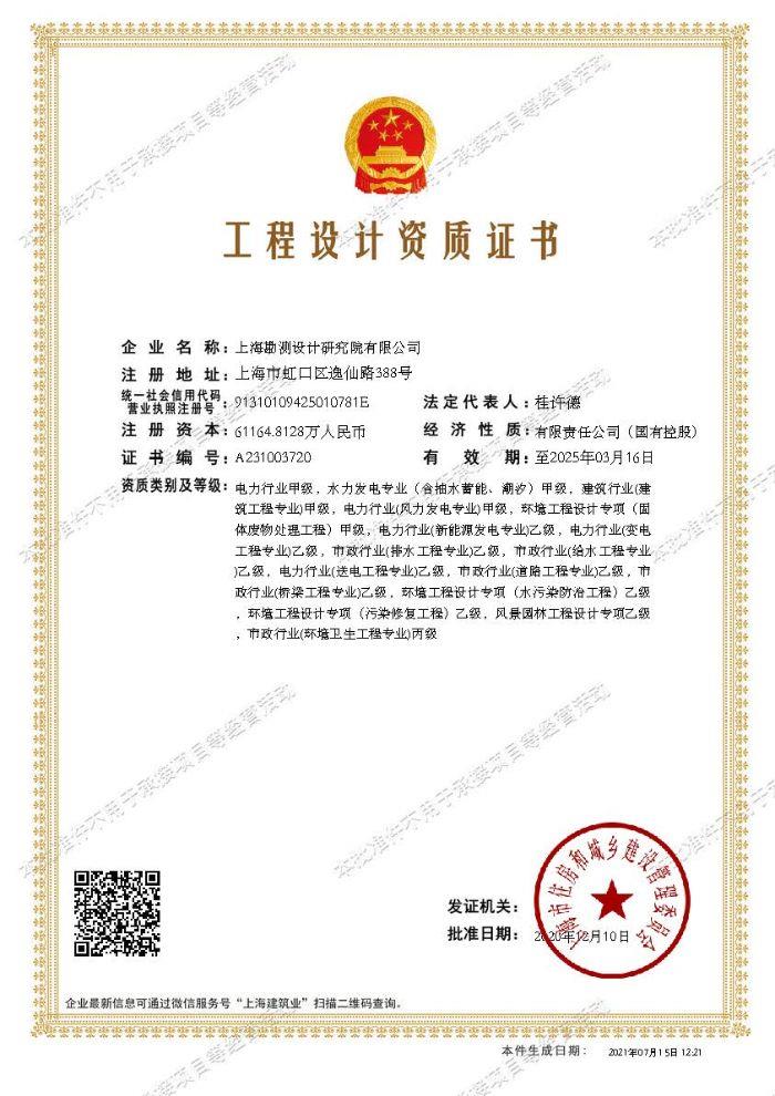 環(huán)境工程設(shè)計專項(污染修復工程、水污染防治工程)乙級;市政行業(yè)(環(huán)境衛(wèi)生工程專業(yè))丙級